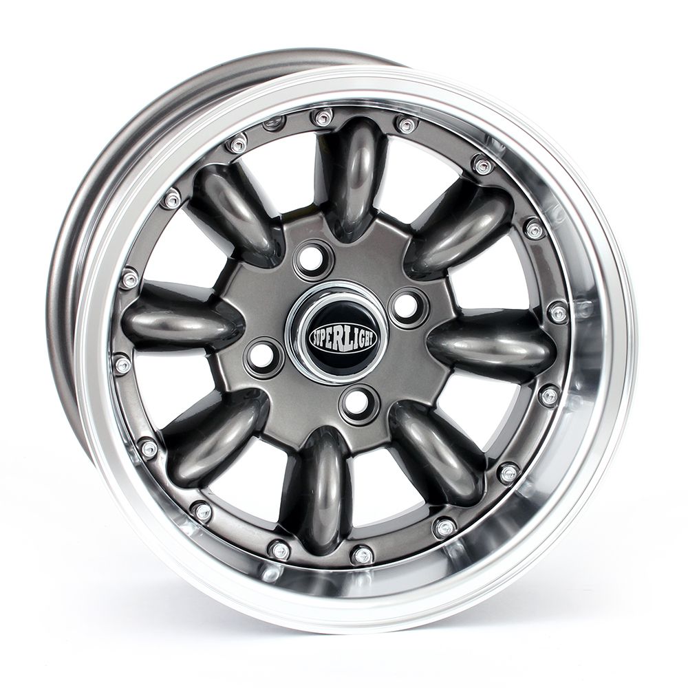 Classic Mini JBW Superlight split rim style alloy wheel - Gunmetal with polished rim - Size = 7 x 13 Offset = ET -7